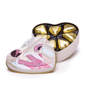 Praliné 30% (NOISETTES, sucre), sucre, masse de cacao 12,6%, poudre de LAIT entier, beurre de cacao 9,9%, LACTOSE, beurre pâtissier (LAIT), poudre de cacao 0,6%, émulsifiant : lécithines (SOJA), sel, arômes.