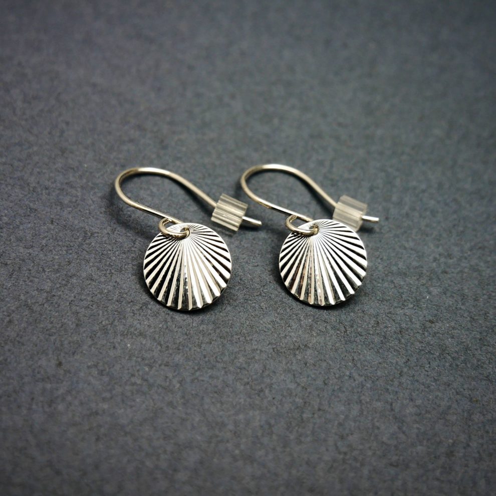 Boucles d’oreilles pendantes minimalistes en argent 925 recyclé, sans nickel. Inspirées du soleil levant, légères et délicates, elles se portent au quotidien ou en soirée.