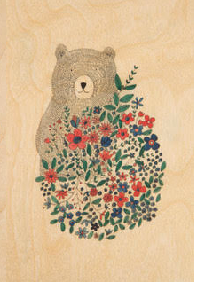 Carte en bois - Ours fleurie