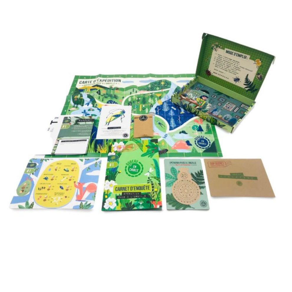 L’Enfant Espion découvre alors son propre nom d’agent, un carnet d’enquête, une carte d’expédition, du matériel secret, un rapport d’enquête à compléter ainsi qu’une enveloppe pré-affranchie pour envoyer ses découvertes d’enquêteur par La Poste.